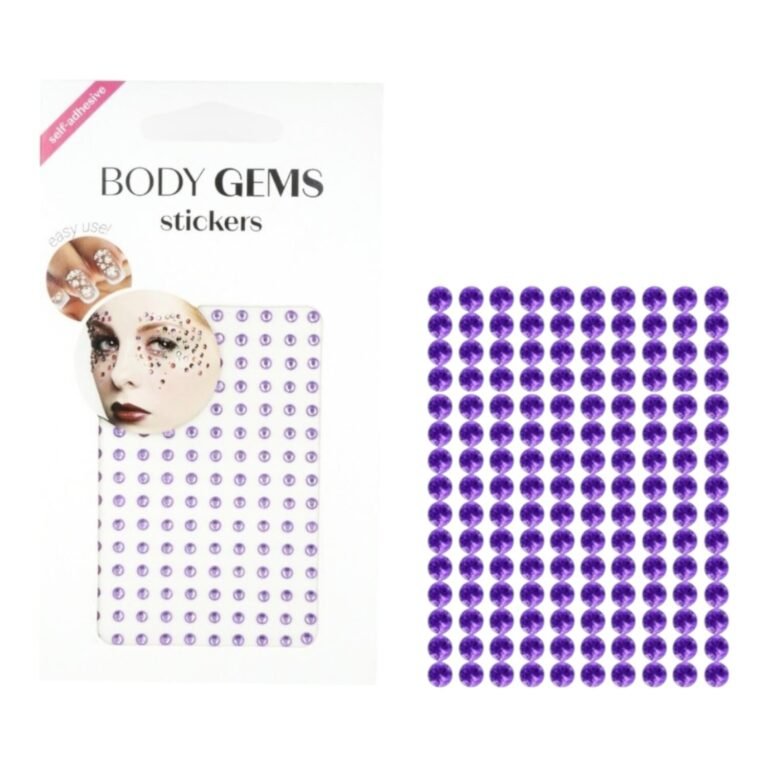 - Brillos adhesivos tipo diamante, ideales para decorar rostro, uñas y orejas.