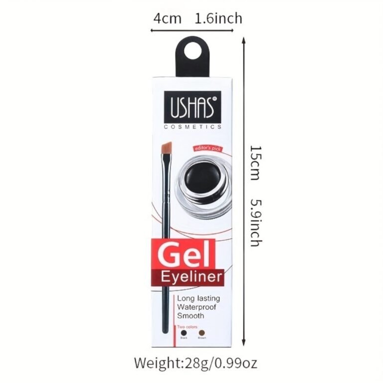 Delineador en gel Ushas de 3,3 g con mini brocha incluida para una aplicación precisa y controlada.