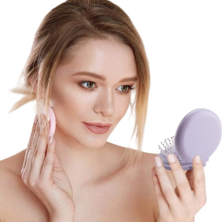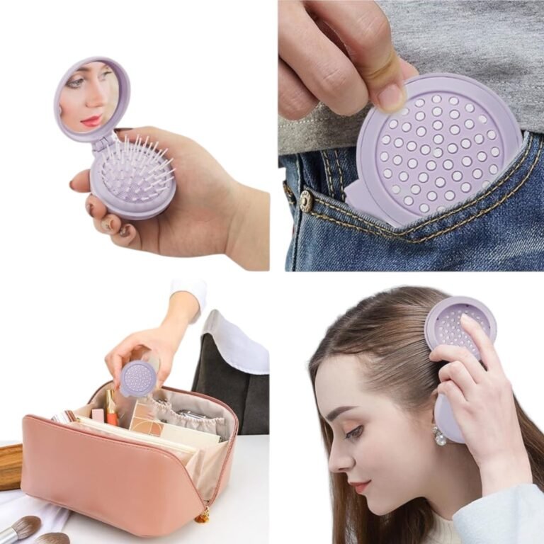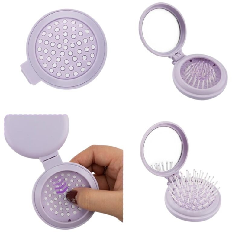 - Peine plegable con espejo incorporado, ideal para retoques rápidos.