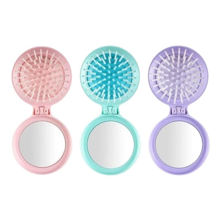 • Peine plegable con espejo incorporado, ideal para retoques rápidos.